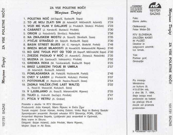 MARJANA DRŽAJ:ZA VSE POLETNE NOČI iz kategorije zabavna in etno glasba sodi med odlične cd.