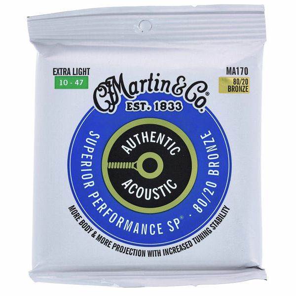 Martin MA170 80/20 Bronze Acoustic Guitar Strune Extra Light 10-47 iz kategorije Seti za akustično kitaro sodi med odlične Strune za akustično kitaro.