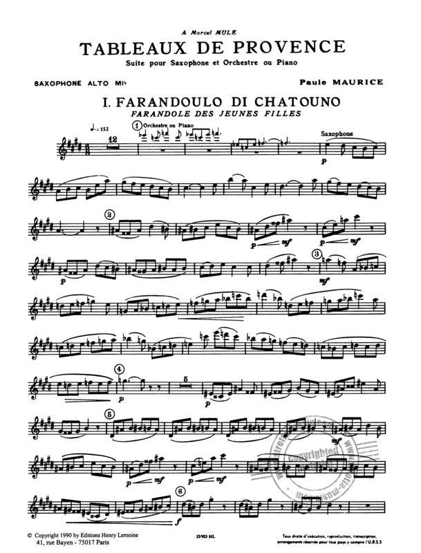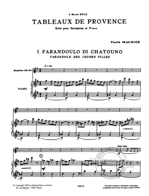 MAURICE P.:TABLEAUX DE PROVENCE POUR SAX iz kategorije skladbe sodi med odlične saksofon.