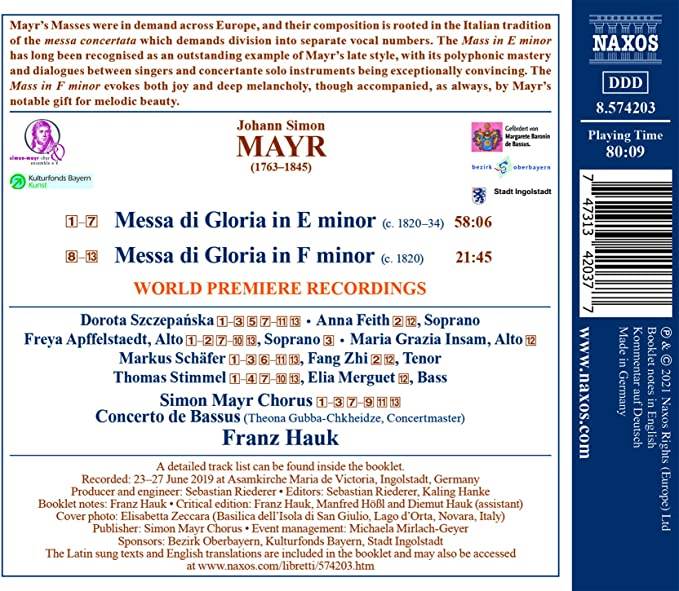 MAYR:MESSA DI GLORIA IN E MINOR /FRANZ HAUK