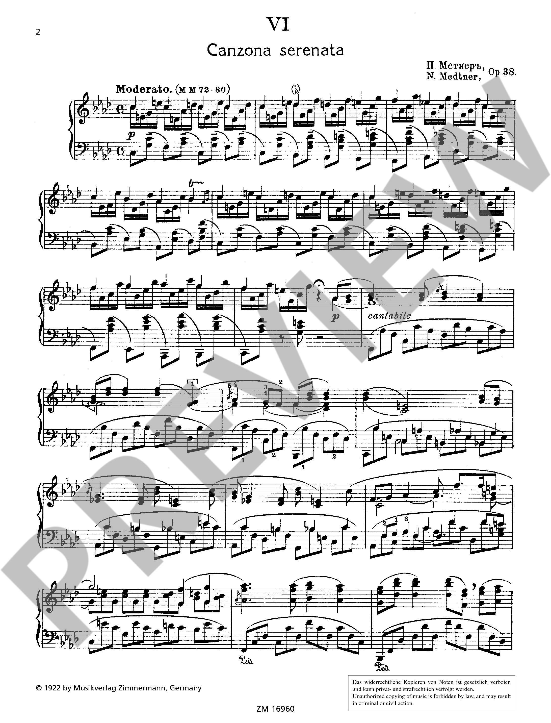 MEDTNER:VERGESSENE WEISEN OP.38 NR.6 CANZONA SERENATA/ERSTER ZYKLUS iz kategorije skladbe, sodi med odlične klavir.
