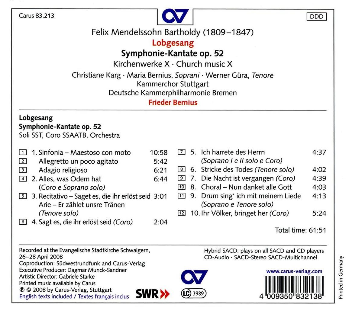 MENDELSSOHN:LOBGESANG SYMPHONIE KANTATE OP.52