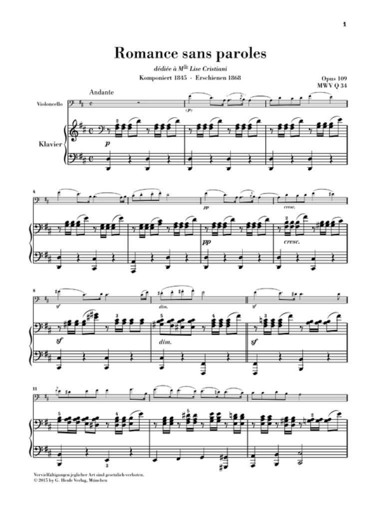 MENDELSSOHN:ROMANCE SANS PAROLES OP.109 CELLO AMD PIANO iz kategorije skladbe sodi med odlične čelo.