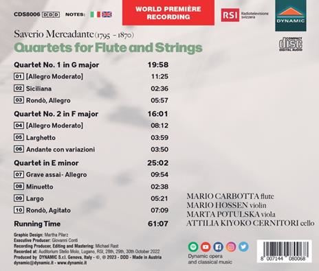 MERCADANTE:QUARTETS FOR FLUTE AND STRINGS iz kategorije klasika in slovenska narodna sodi med odlične cd.