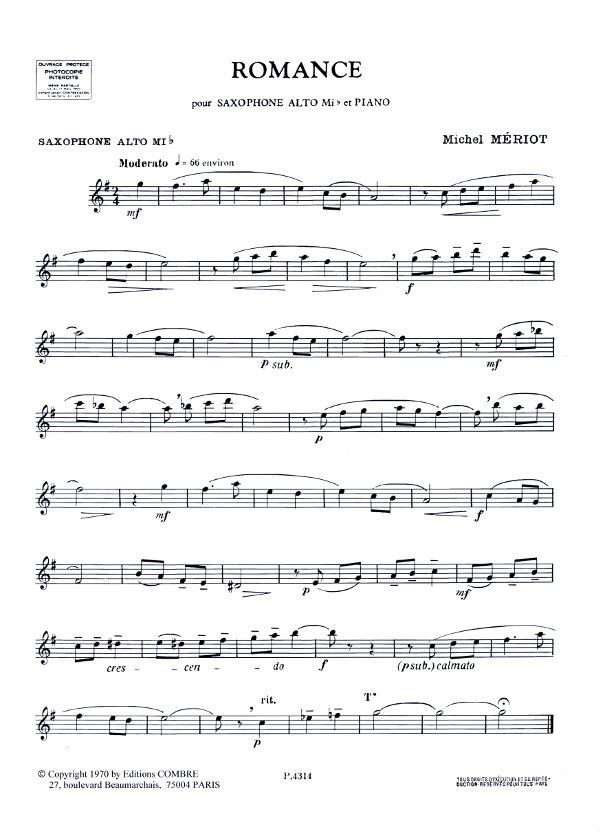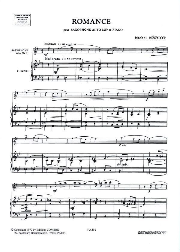 MERIOT:ROMANCE ALTO SAXOPHONE ET PIANO iz kategorije skladbe sodi med odlične saksofon.