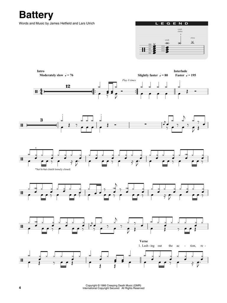 METALICA 1983-1988 PLAY ALONG DRUM + AUDIO ACCESS iz kategorije zabavna glasba sodi med odlične tolkala.HL00234340 1. Battery 2. Creeping Death 3. Fade To Black 4. For whom the be ...