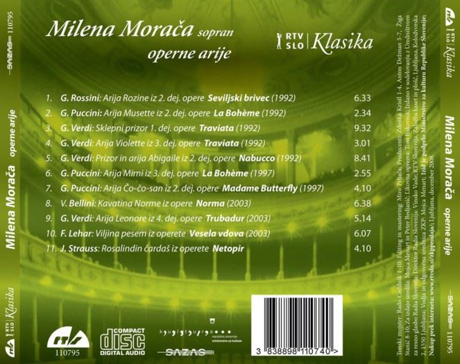 MILENA MORAČA-OPERNE ARIJE iz kategorije klasika in slovenska narodna sodi med odlične cd.