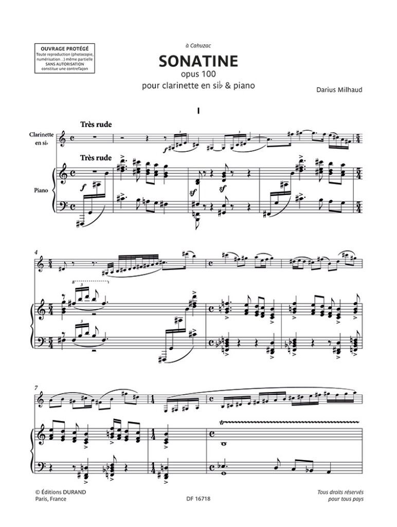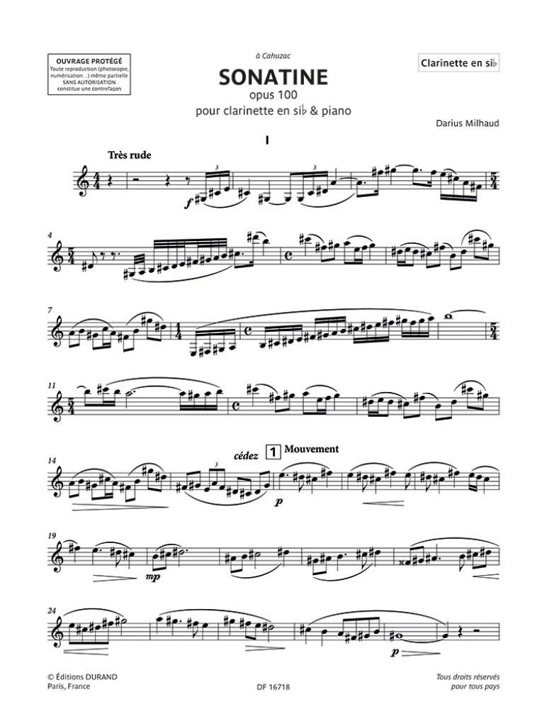 MILHAUD:SONATINE OP.100 POUR CLARINETTE & PIANO iz kategorije skladbe sodi med odlične klarinet.