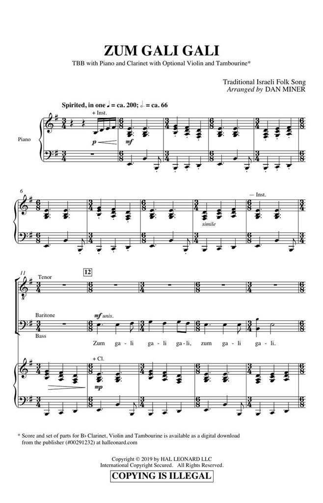 MINER:ZUM GALI GALI ISRAELI FOLK SONG TBB,CLARINET & PIANO OPTIONAL VIOLIN iz kategorije zbori sodi med odlične vokal.