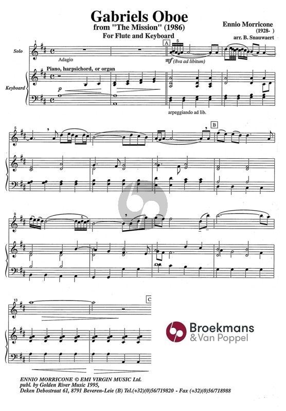 MORRICONE:BROTHERS GABRIELS OBOE FOR FLUTE AND PIANO iz kategorije zabavna glasba sodi med odlične flavta.