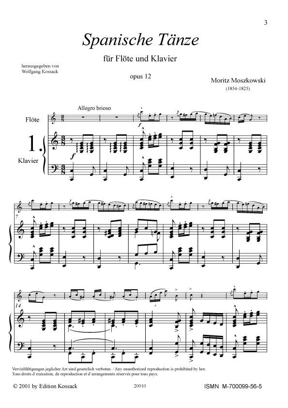 MOSZKOWSKI:SPANISCHE TANZE OP.12 FLUTE AND PIANO iz kategorije skladbe sodi med odlične flavta.
