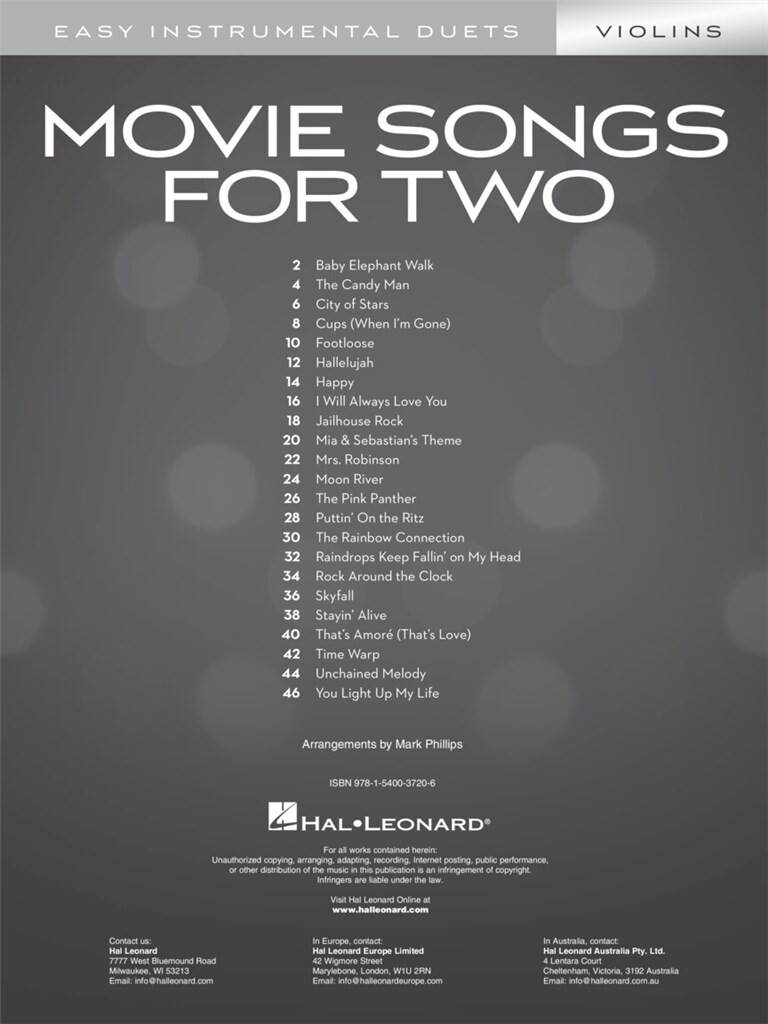 MOVIE SONGS FOR TWO EASY SUETS VIOLINS iz kategorije godala komorni sestavi sodi med odlične godala.HL00284656 1. Baby Elephant Walk (from the Paramount Picture HATARI!) [Mark Phi ...