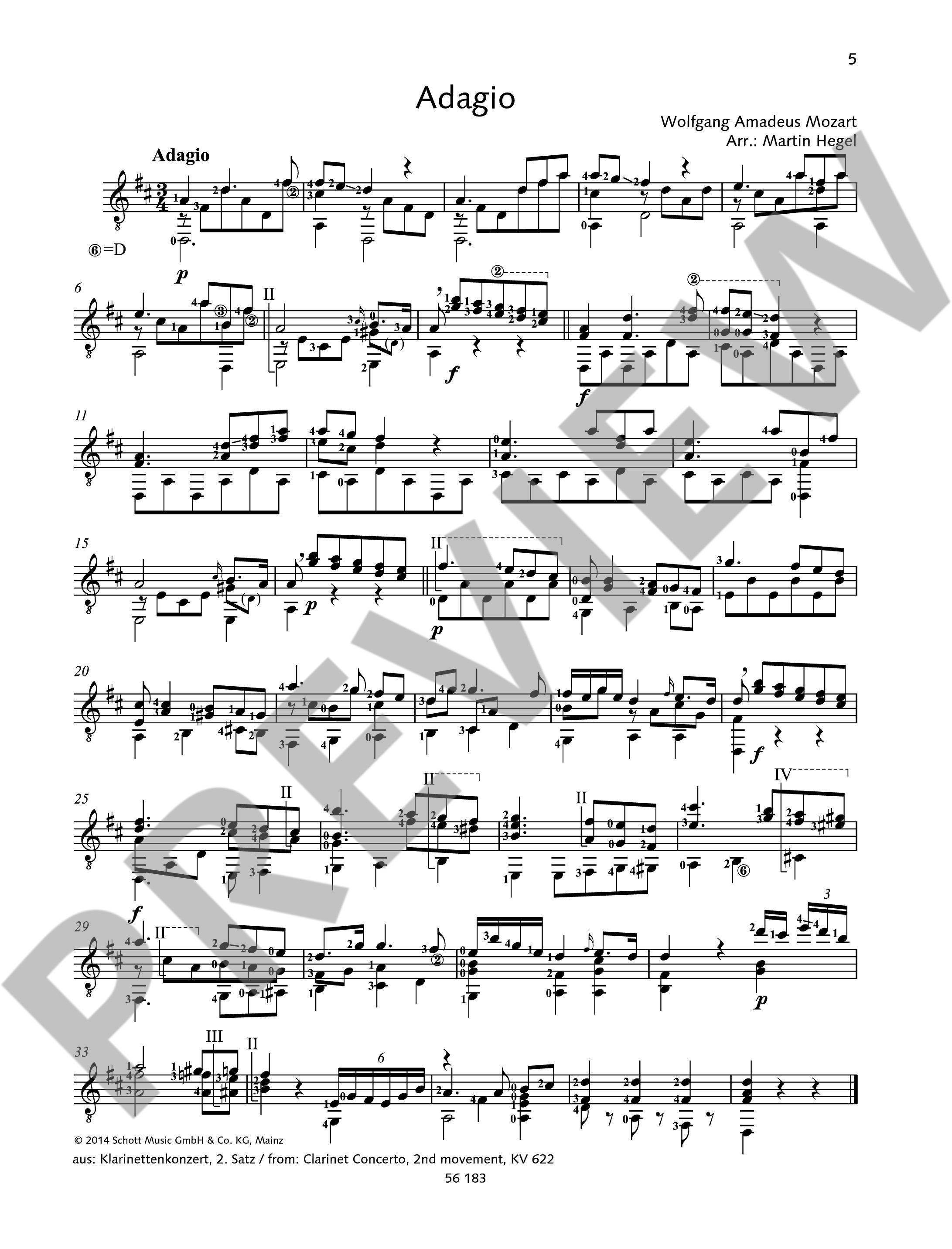 MOZART FOR GUITAR 32 TRANSCRIPTIONS FOR GUITAR iz kategorije skladbe sodi med odlične klasična kitara.ED21856 Lullaby KV 350 Adagio from Clarinet Concerto KV 622 Andante grazioso ...