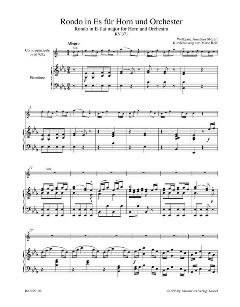 MOZART: RONDO ES-DUR KV 371 HORN AND PIANO iz kategorije skladbe sodi med odlične rog.
