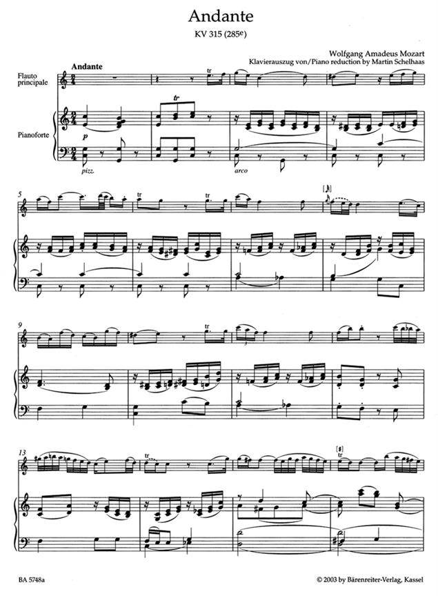 MOZART:ANDANTE IN C KV 315(285) FLUTE AND PIANO