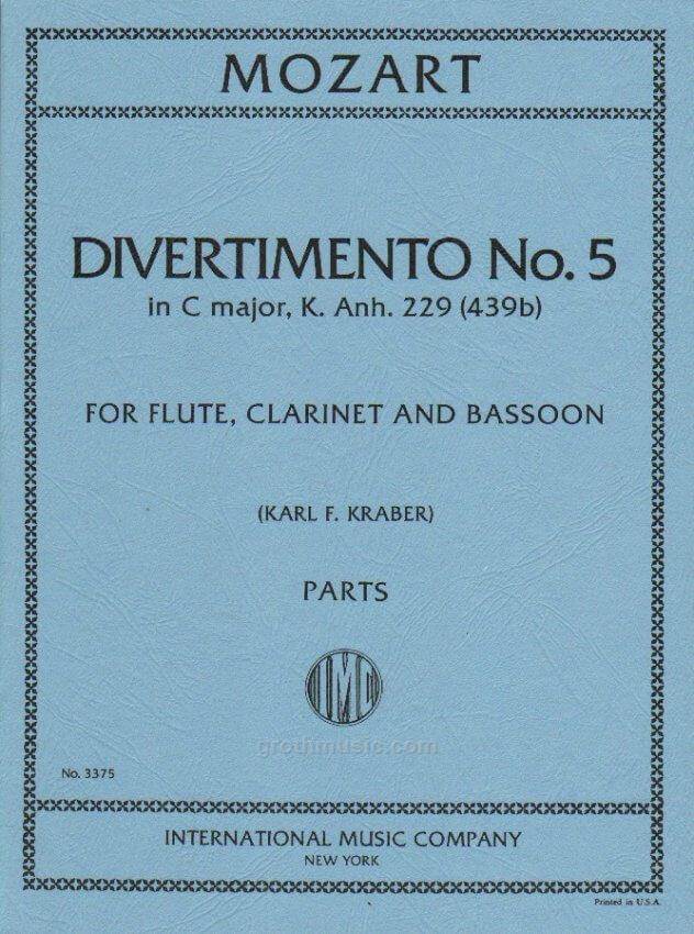 MOZART:DIVERTIMENTO NO.5 C MAJOR A.ANH.229 FOR FLUTE,CLARINET AND BASSOON
