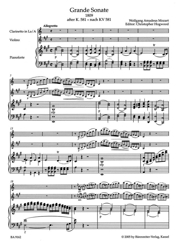 MOZART:GRANDE SONATE KV581 CLARINET(VIOLIN) AND PIANO iz kategorije skladbe sodi med odlične klarinet.