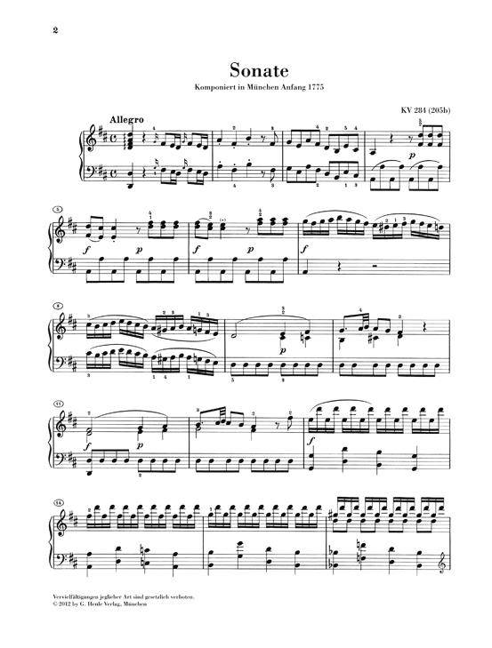 MOZART:KLAVIERSONATE KV 284 D-DUR iz kategorije skladbe, sodi med odlične klavir.Sonata v D-duru je zadnja od šestih sonat K. 279–284, ki jih je imel Mozart v prtljagi, ko se je se ...