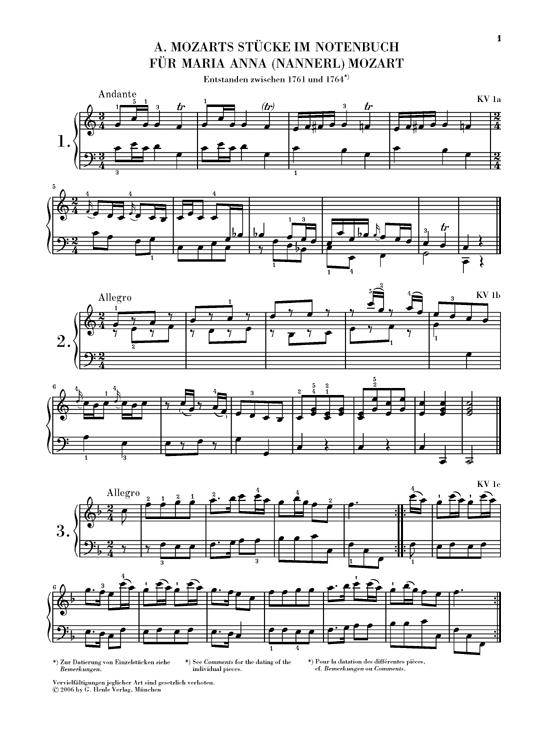 Mozart: Mozarts pieces from the Nannerl Notenbuch KV 1auf, 2u5, 9a (5a),6u8