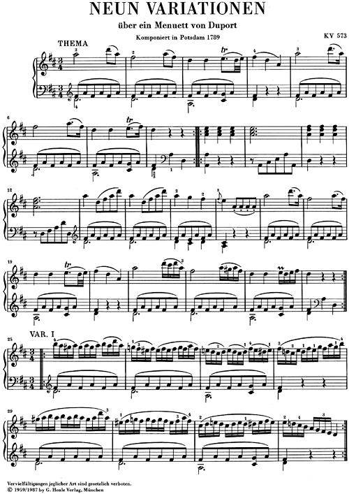 MOZART:NEUN VARIATIONEN UBER EIN MENUETT VON DUPORT KV 573 iz kategorije skladbe, sodi med odlične klavir.Rečeno je, da je Mozart v uvodni izjavi 23. marca 1783 s slavnim skladatel ...