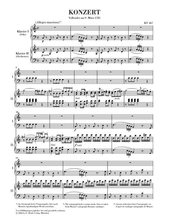 MOZART:PIANO CONCERTO KV 467 C-DUR iz kategorije skladbe, sodi med odlične klavir.Nihče drug kot András Schiff sodeluje z založbo Henle pri izdaji Mozartovih klavirskih koncertov. ...