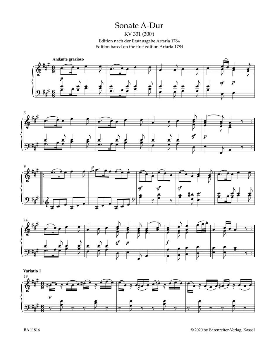Mozartova sonata v duru "za klavir solo", objavljena leta 1784, je s svojim znamenitim finalom "Alla Turca" eno najbolj priljubljenih del v celotni klavirski literaturi. Potem ko je bil del izgubljenega avtograma pred nekaj leti znova odkrit, se je pojavil še en pomemben vir s pojavom prej neznane sodobne kopije celotnega avtografa, zaradi česar je Bärenreiter posodobil svojo prejšnjo urtekstinsko izdajo tega slavnega dela.
