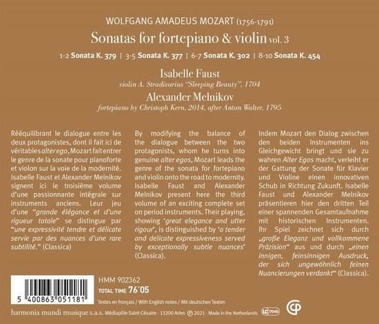 MOZART:SONATAS FOR FORTEPIANO & VIOLIN VOL.3/FAUST/MELNIKOV iz kategorije klasika in slovenska narodna sodi med odlične cd.Nominated - Chamber Music International Classical Music A ...