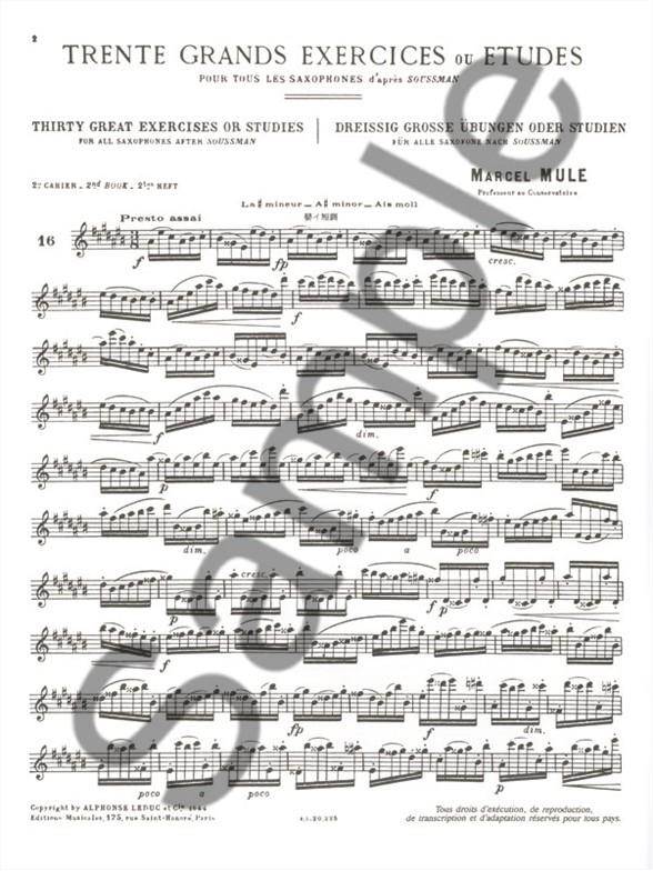 MULE:30 GRANDES EXERCICESOU ETUDES 2 iz kategorije etude sodi med odlične saksofon.