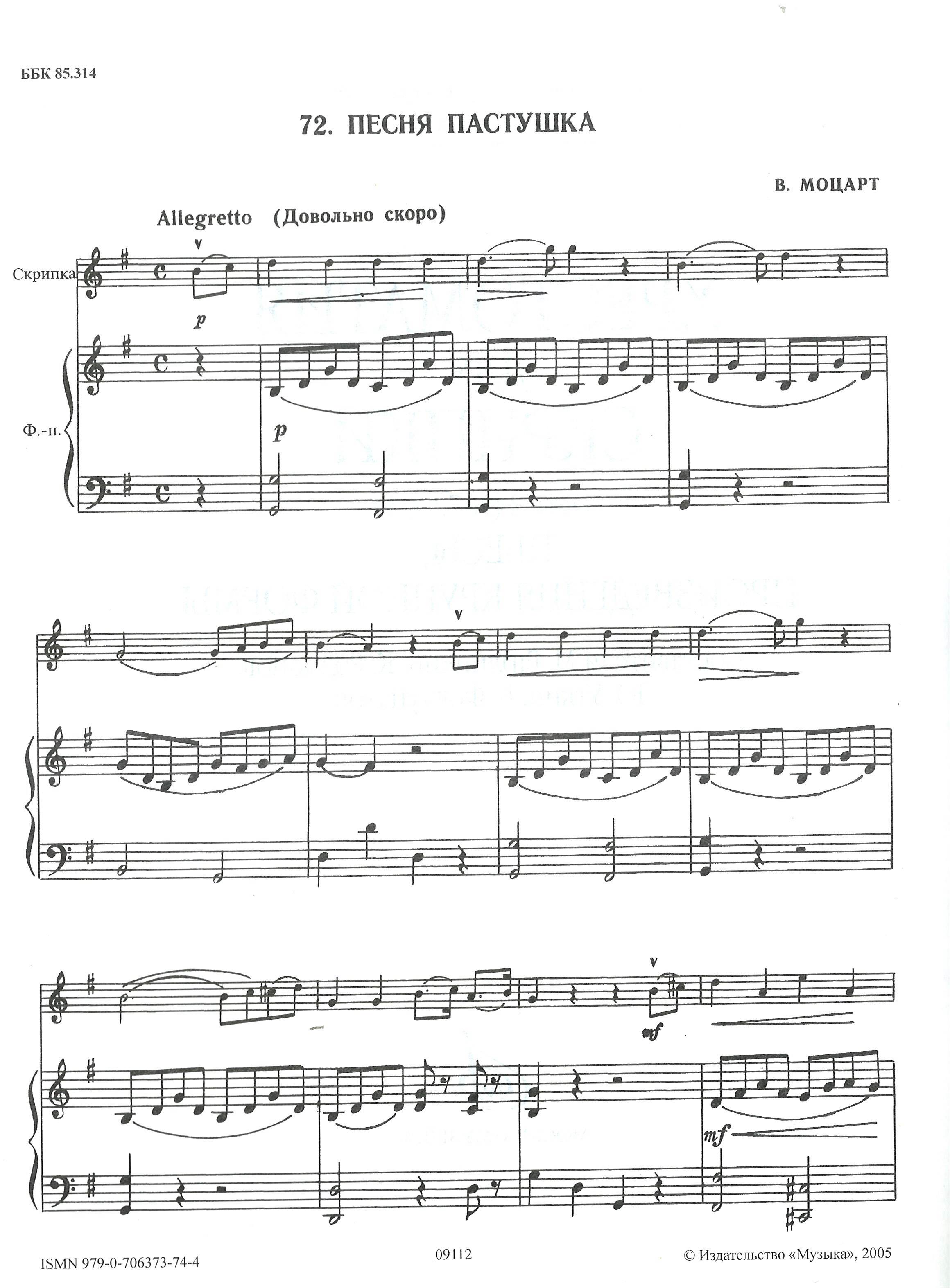 MUSIC READER FOR VIOLIN AND PIANO SCHOOL 1-2/2 (HRESTOMATIJA) iz kategorije skladbe sodi med odlične violina. 72. W. Mozart. Shepherdess song 73. F. Schubert. Landler 74. W. Mozart ...