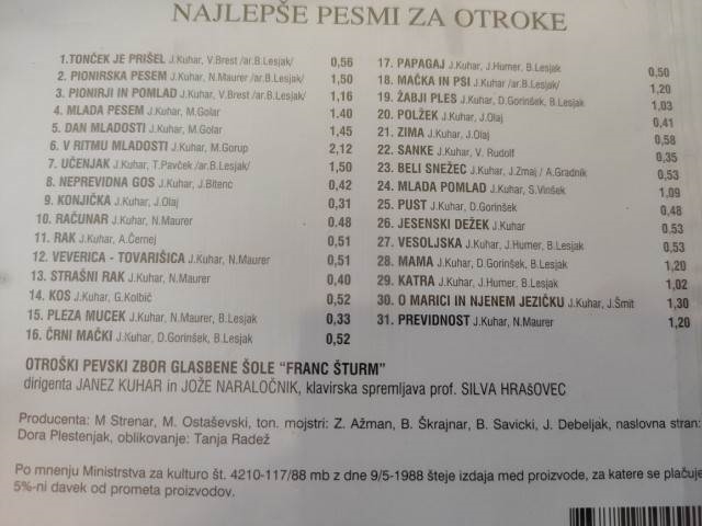NAJLEPŠE PESMI ZA OTROKE:JANEZ KUHAR iz kategorije otroški sodi med odlične cd.