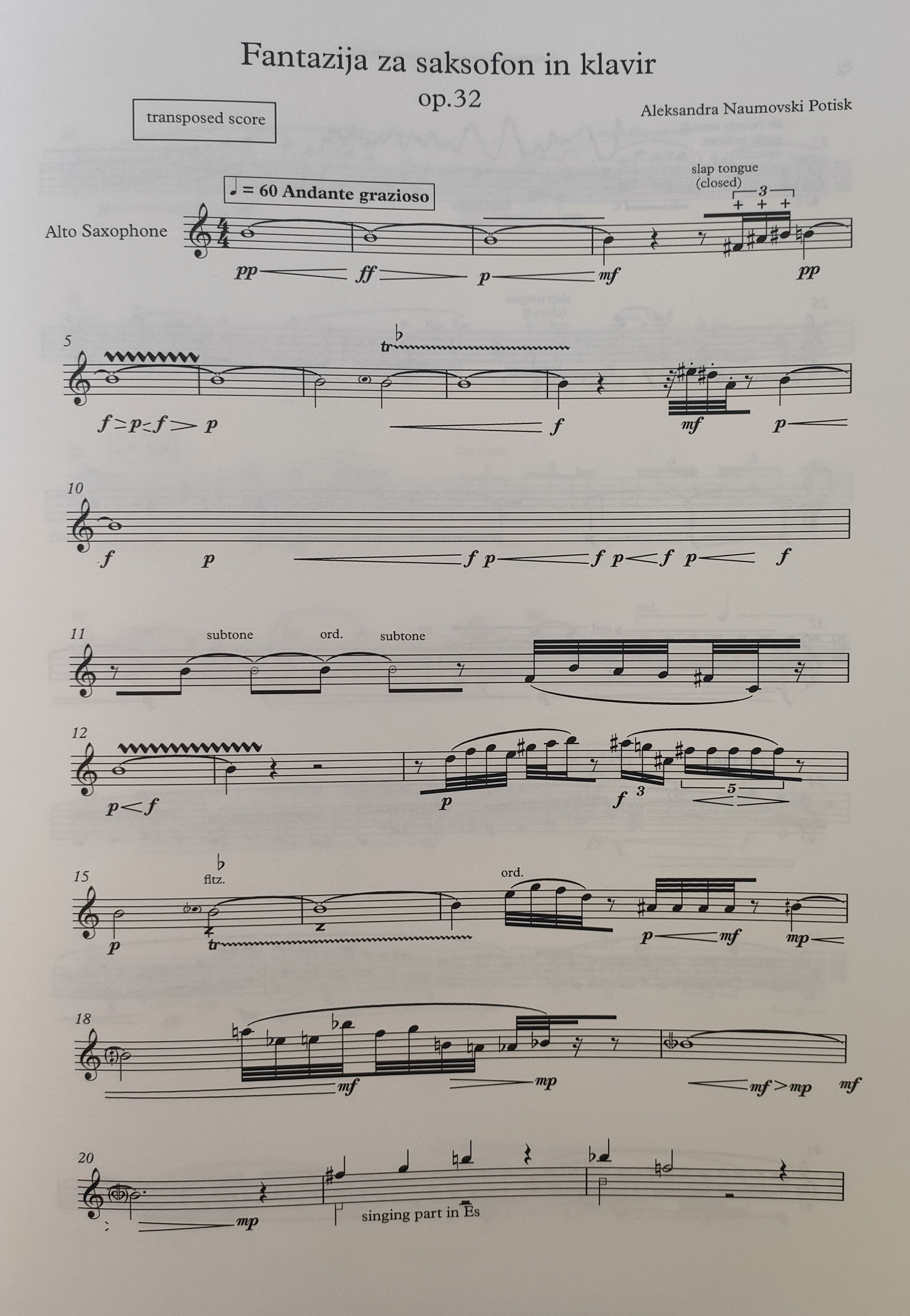 NAUMOVSKI POTISK:FANTAZIJA OP. 32 ZA SAKSOFON IN KLAVIR iz kategorije skladbe sodi med odlične saksofon.