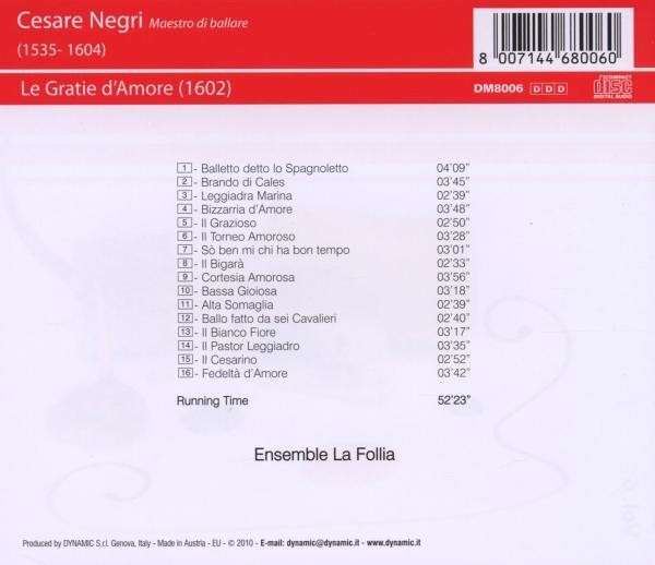 NEGRI:LE GRATIE D'AMORE (1602) iz kategorije klasika in slovenska narodna sodi med odlične cd.