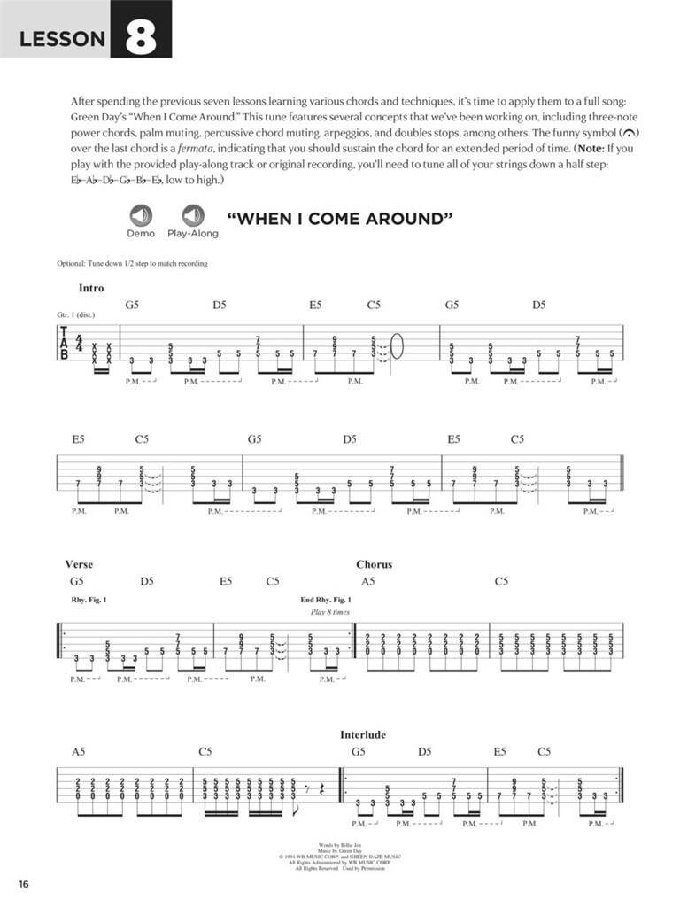 Serija prvih 15 lekcij ponuja načrt lekcije po korakih za absolutnega začetnika, skupaj z zvočnimi posnetki, video lekcijami in pravimi pesmimi! Zasnovan za samopoučevanje ali za uporabo z inštruktorjem, boste zgradili trdne temelje, ko boste delali skozi vsako lekcijo, se učili osnov inštrumenta in branja glasbe, medtem ko boste vadili številne vaje, koncepte in odlomke pesmi. Navodila, ki jih morate poznati, da lahko začnete igrati takoj, z brezplačnim spletnim sprejemnikom in metronomom! Knjiga o električni kitari vsebuje lekcije o: osnovah kitare, branju glasbe, akordih, bobnanju, arpeggioh, sinkopiranju, kladivih in izvlekih, diapozitivih, upogibanju strun in vibratu, dvojnih stopnicah, harmonikah, nadomestnem izbiranju, utišanju na dlani ter lestvicah in osnovnih. teorijo. Vključuje dele kitare iz 33 pesmi: American Pie · Brown Eyed Girl · Crazy Little Thing Called Love · Hit Me with Your Best Shot · James Bond Theme · Layla · Runnin' down a Dream · Smells like Teen Spirit · Smoke on the Water · Under most · When I Come Around · You Really Got Me · in še več. Hitro učenje za vaše prvo leto pouka!