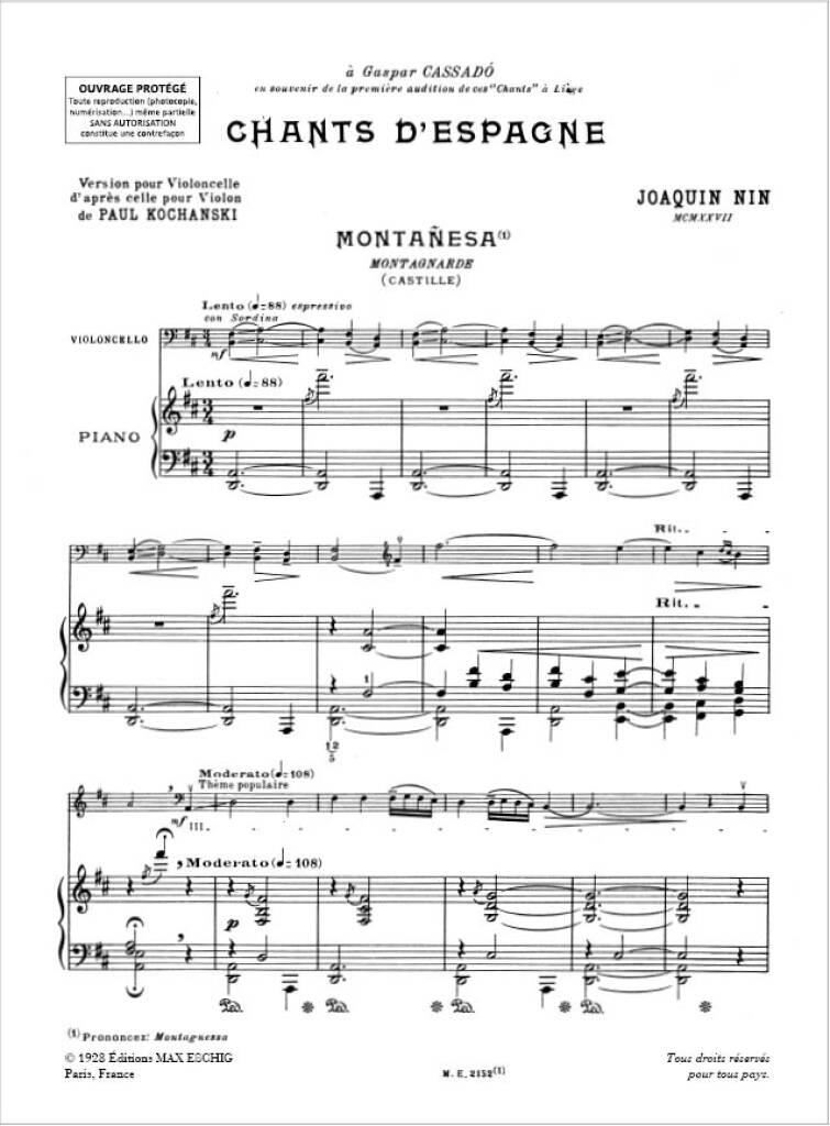 NIN:CHANT D'ESPAGNE CELLO & PIANO