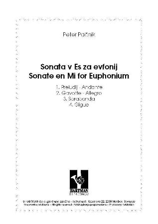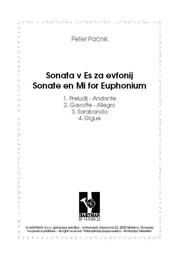 Pačnik Peter: Sonata v Es za evfonij iz kategorije skladbe sodi med odlične bariton.Peter Pačnik: Sonata v Es za evfonij Sonate en Mi for Euphonium 1. Preludij - Andante 2. Gavott ...