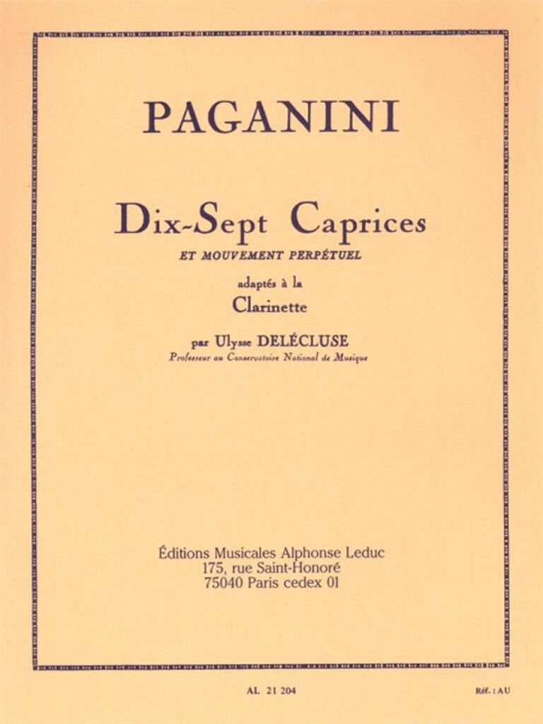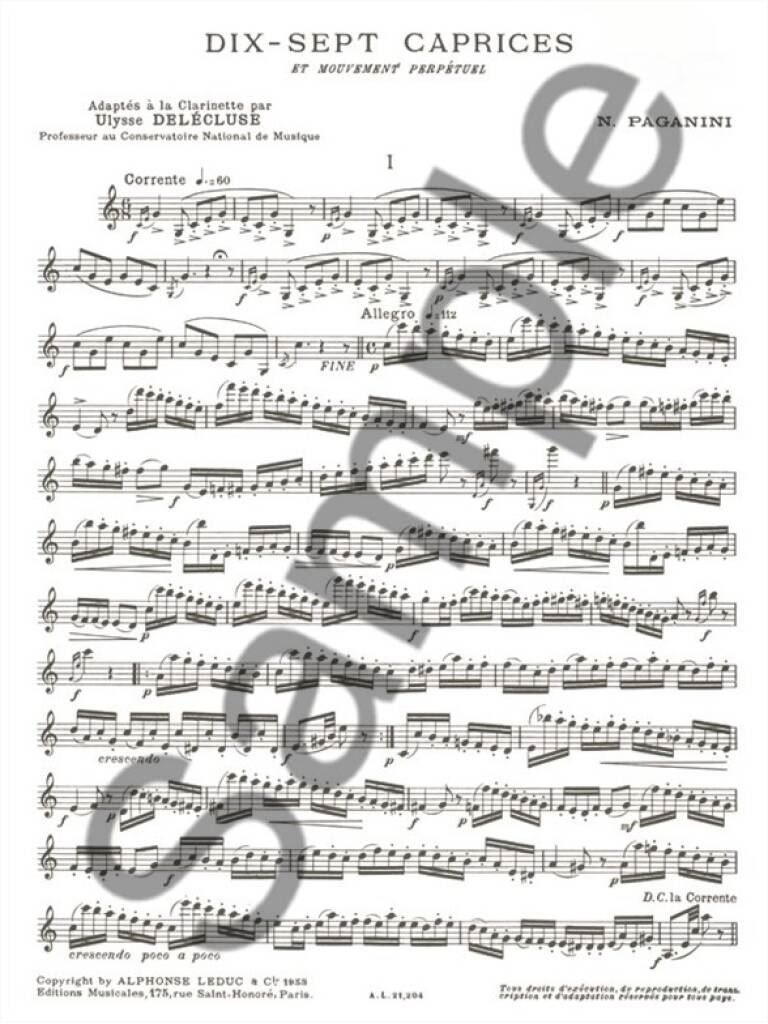 PAGANINI:DIX SEPT CAPRICES iz kategorije etude sodi med odlične klarinet.