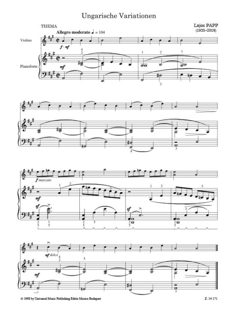 PAPP:HUNGARIAN VARIATIONS FOR VIOLIN AND PIANO