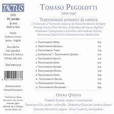 PEGOLOTTI:TRATTENIMENTI ARMONICI OPERA PRIMA 1698/OPERA QVINTA