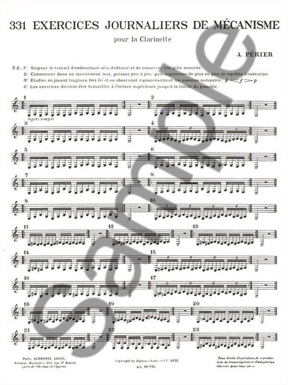 PERIER A:331 EXERCICES JOURNALIERS iz kategorije etude sodi med odlične klarinet.