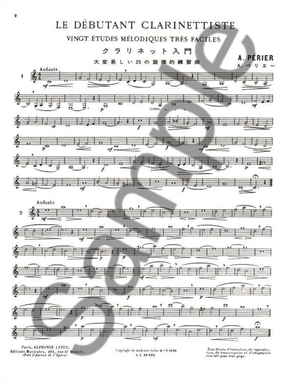 PERIER:LA DEBUTANT CLARINETTISTE 20 ETUDES MELODIQUES TRES FACILES iz kategorije etude sodi med odlične klarinet.