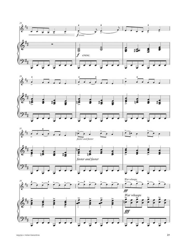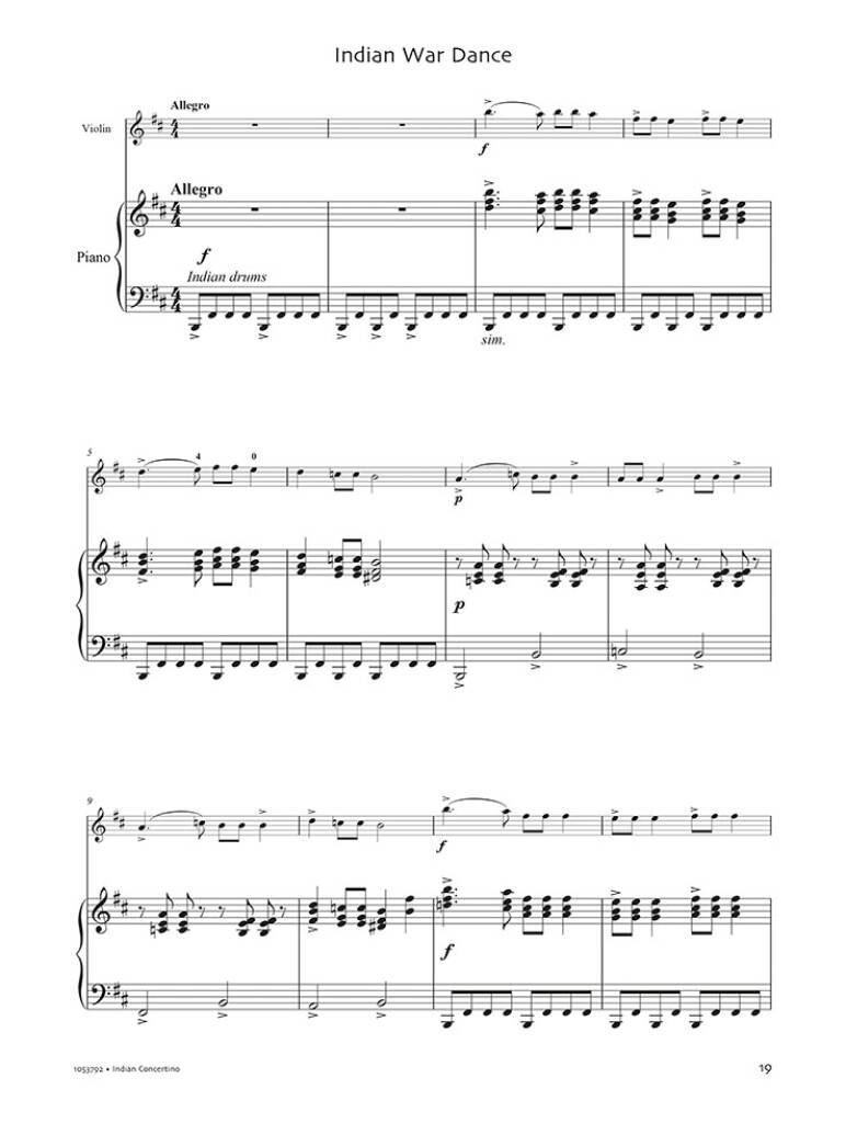 Study & Play je idealen za razvoj vašega igranja na prijeten in glasbeno zvočen način. Vsaka izdaja tega koncepta vsebuje zgoščenko, ki dodaja nekaj k vaši študijski rutini. Ko igrate to Concertino, vam CD omogoča vadbo pri počasnejšem študijskem tempu in običajnem tempu, tako da lahko delate na igranju violine na bolj osredotočen način in hkrati izboljša svoj vpogled v glasbo. Na ta ciljno usmerjen način lahko nadaljujete s študijem, dokler ne dosežete želenega rezultata. Pozorno preberite informacije o CD-ju, da boste ta koncept v celoti izkoristili. Naslov te skladbe namiguje na koncertno situacijo: igranje solo vloge ob spremljavi. Takšnih del za violino je na tisoče, vendar se z mnogimi od njih ni mogoče lotiti, dokler ne igrate dlje časa. Indian Concertino vam omogoča, da pridobite potrebne izkušnje za tovrstno igranje; in sicer imeti dovolj glasbenega in tehničnega nadzora nad vašim inštrumentom, hkrati pa imeti podporo spremljevalca med nastopom. Ta skrbno izbran koncertno bo obogatil vaš repertoar.