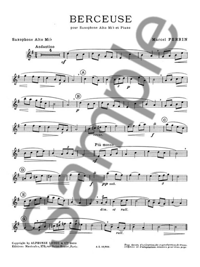 PERRIN:BERCEUSE POUR SAXOPHONE ALTO ET PIANO iz kategorije skladbe sodi med odlične saksofon.