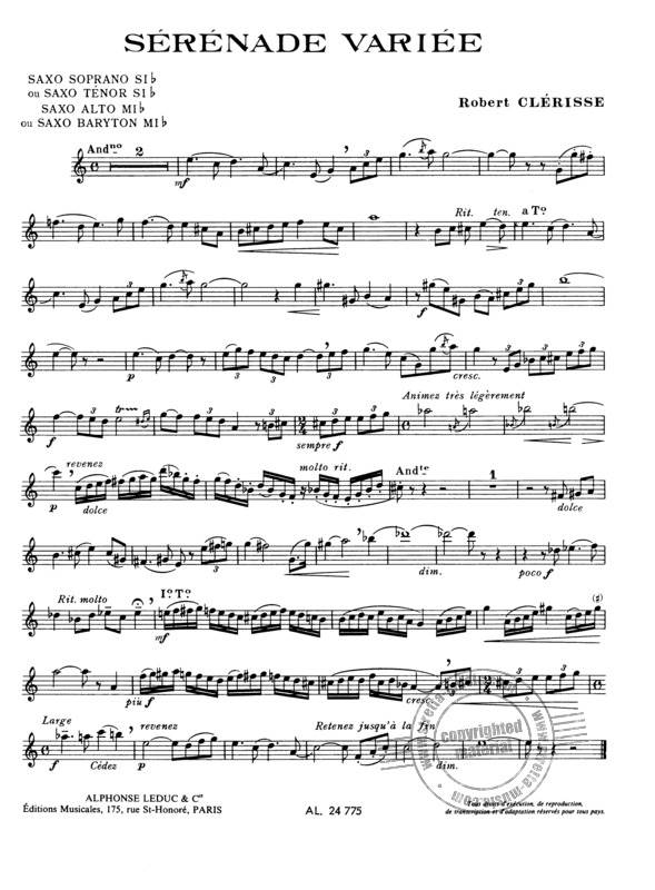 PHILIPPO/CLERISSE;SERENADE VARIEE iz kategorije skladbe sodi med odlične saksofon.