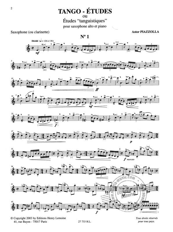 PIAZZOLA:TANGO ETUDES iz kategorije skladbe sodi med odlične saksofon.