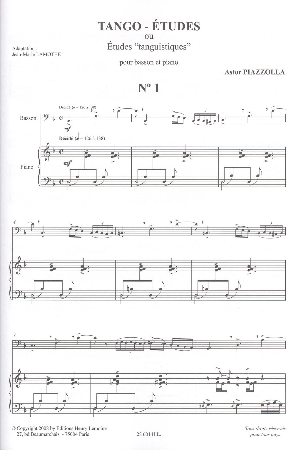 PIAZZOLLA:TANGO ETUDES BASSPN ET PIANO iz kategorije skladbe sodi med odlične fagot.