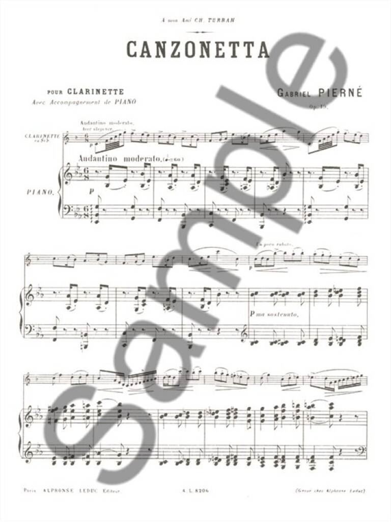 PIERNE:CANZONETTA CLARINETTE ET PIANO iz kategorije skladbe sodi med odlične klarinet.
