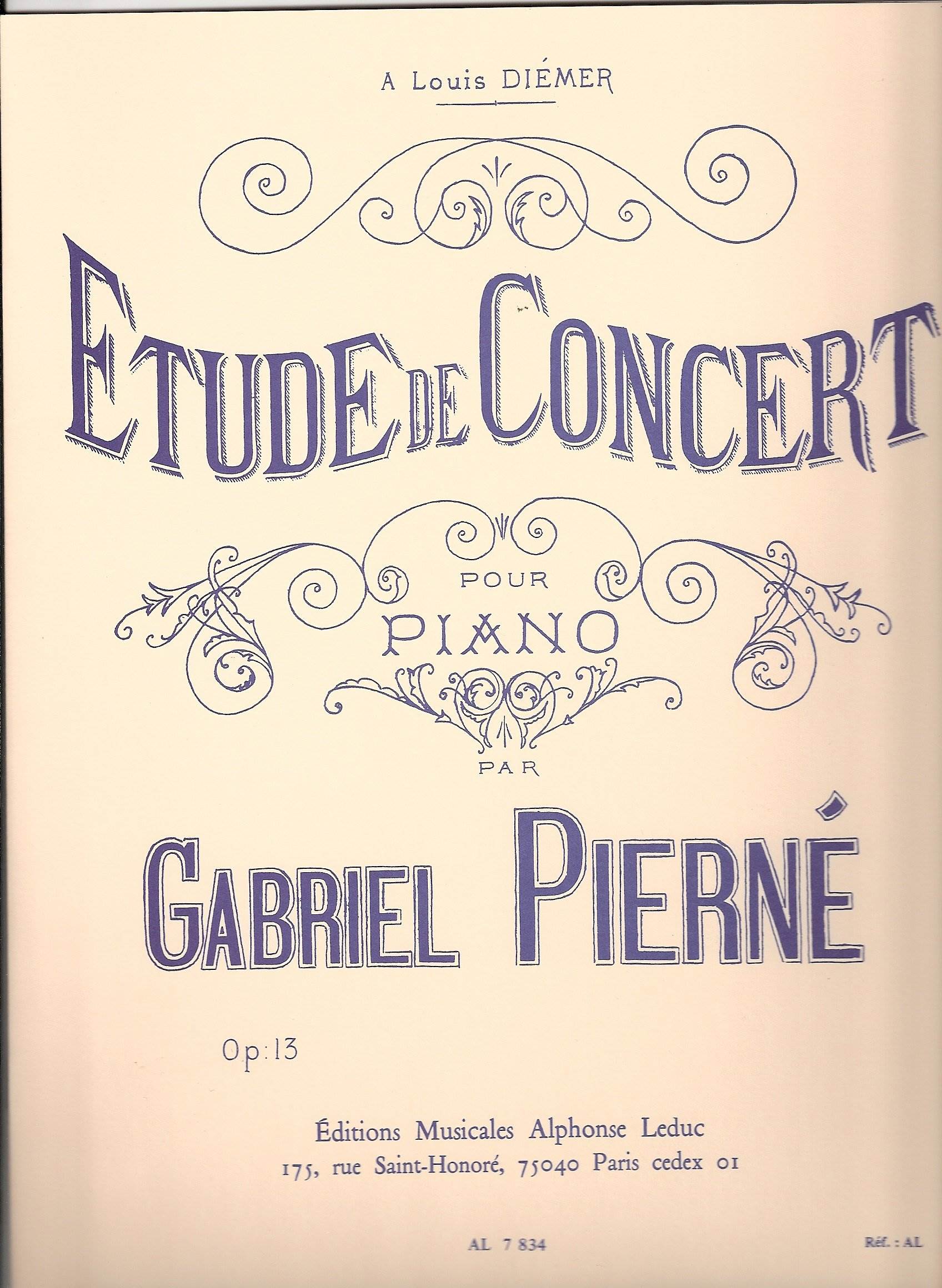 PIERNE:ETUDE DE CONCERT OP.13 POUR PIANO iz kategorije skladbe, sodi med odlične klavir.