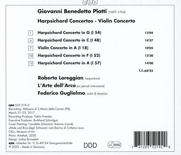 PLATTI:FOUR HARPSICHORD CONCERTOS -VIOLIN CONCERTO