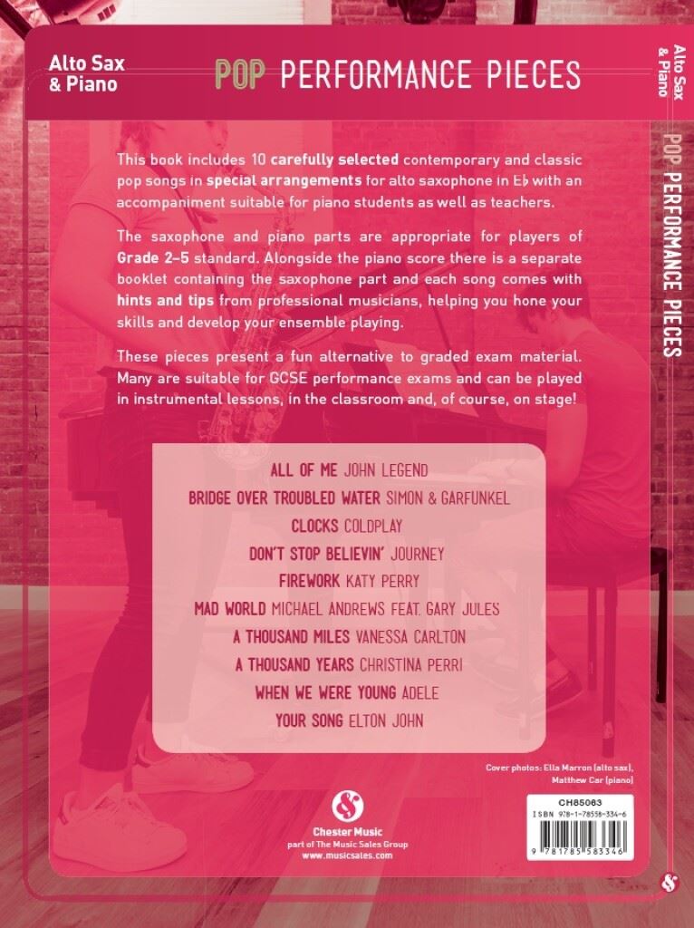 POP PERFORMANCE PIECES 10 HIT SONGS FOR ALTO SAXOPHONE AND PIANO iz kategorije zabavna glasba sodi med odlične saksofon.CH85063 1. A thousand miles 2. A Thousand Years 3. All of M ...
