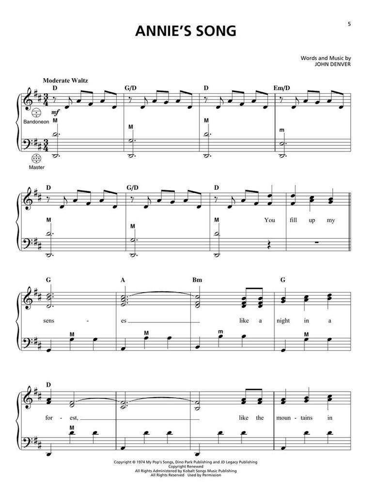 POP STANDARDS FOR ACCORDION iz kategorije zabavna glasba sodi med odlične Klavirska.HL00254822 1. All My Loving 2. Annie's song 3. Can't Smile Without You 4. Chances Are 5. For On ...